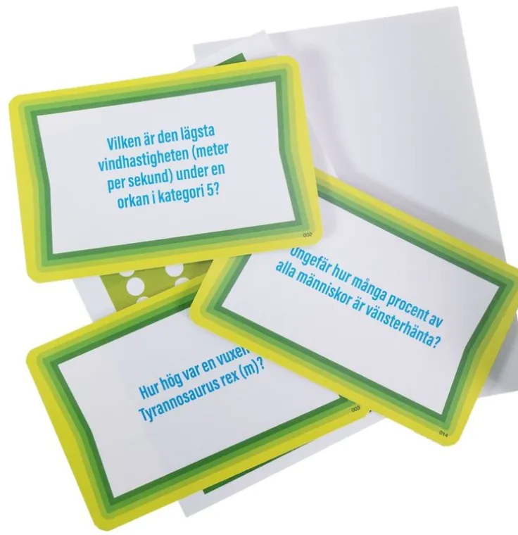 Vem säger att genomsnittlighet är tråkigt? För att vinna detta spel måste du hålla dig nära vägens mitt. I Mitt i prick tävlar spelarna om vems svar som konsekvent ligger mest i mitten. – Ett annorlunda trivia-spel! – Praktisk resestorlek!