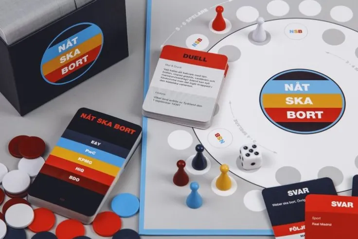Nåt Ska Bort är ett utmanande frågespel där det gäller att veta vilket av fem alternativ som inte hör ihop med de andra. Svarar du dessutom rätt på kluriga följdfrågor får du lägga ut marker på spelplanen. Hamnar din spelpjäs på en motståndares marker blir det duell. Då gäller det att blixtsnabbt svara rätt, eller att ha is i magen och hoppas på motspelarens misstag. Den spelare som först lyckats placera ut alla sina marker på spelplanen har vunnit!