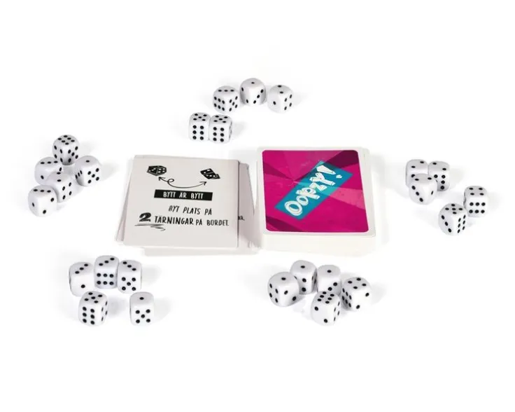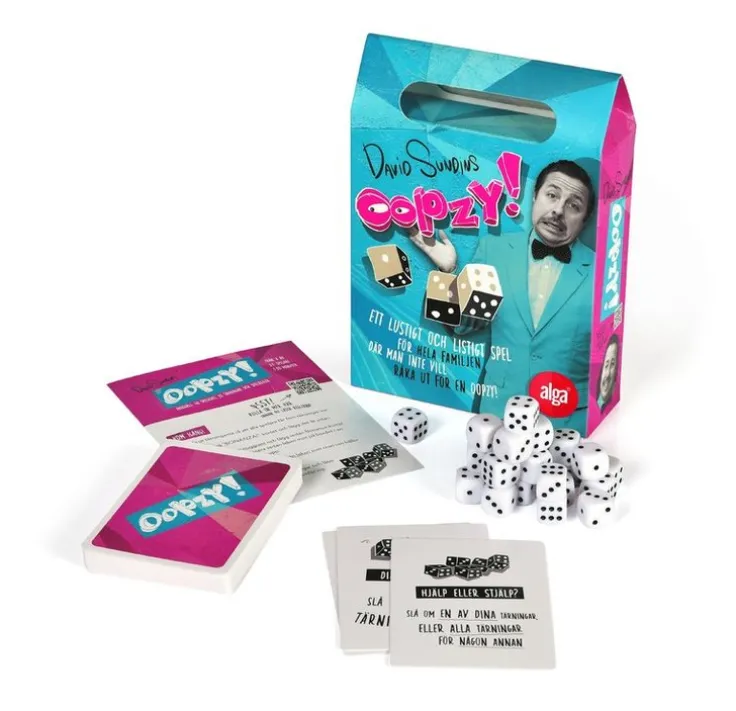 Oopzy- är ett lustigt och listigt kort- och tärningsspel där det gäller att vara den som först får sina fem tärningar att visa samma sak. Men se upp – dina motspelare kommer att göra allt de kan för att sabotera för dig! Ett spel för dig som inte räds att göra gamla vänner till nya fiender!