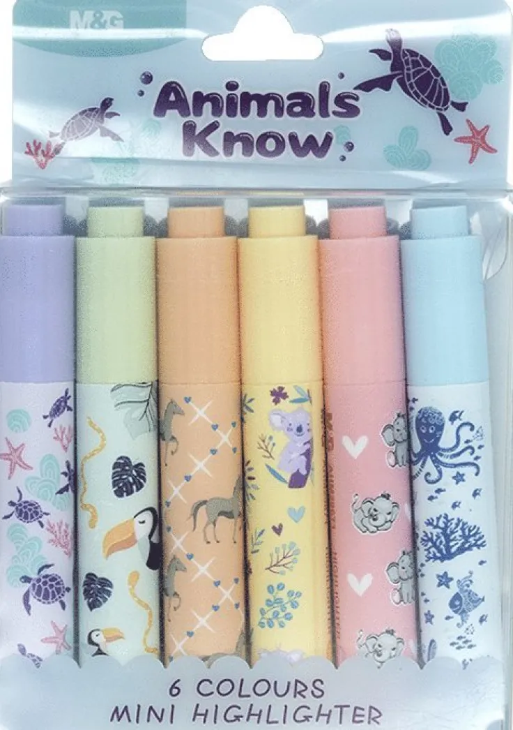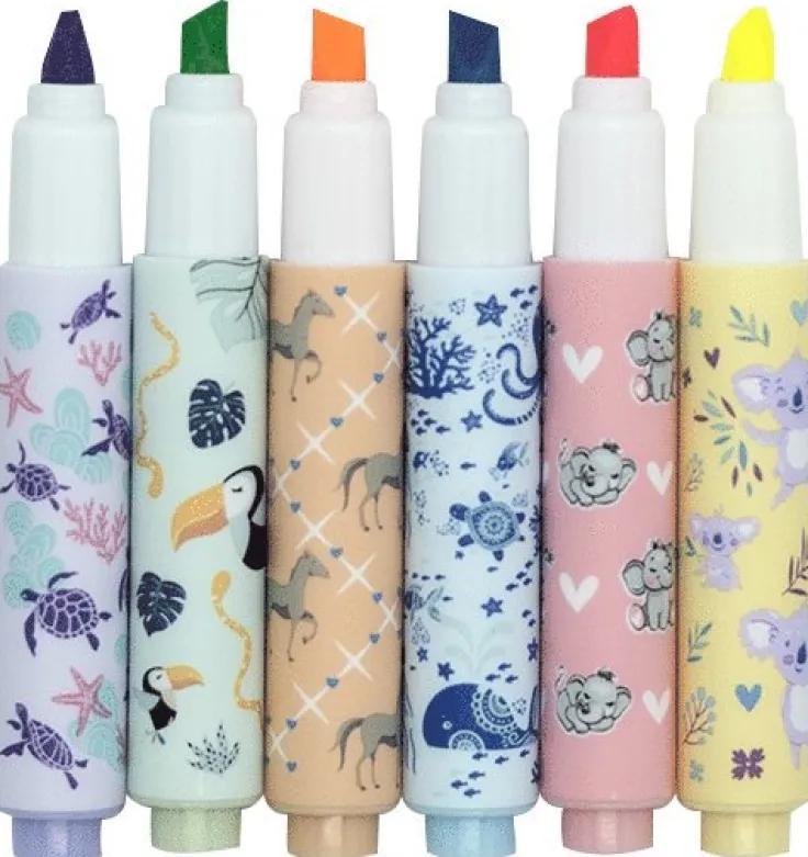 Highlighters, överstyrkningspennor mini, 6 olika färger och design i en förpackning