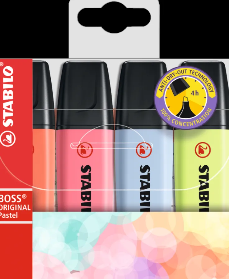 Designklassikern i eleganta pastellfärger har STABILO BOSS ORIGINAL varit en ikonisk neonmarkör sedan 1971. Sortimentet har nu gjorts ännu mer dynamiskt genom ett utökat sortimentet med subtila men ändå eleganta pastellnyanser: antydan till mynta, rosa rouge, lila dis och touch av turkos. En överstrykningspenna för dig som föredrar mjuka och krämiga nyanser framför starka och bländande färger. Med högkvalitativ STABILO Anti-Dry-Out-teknik (upp till fyra timmar) och vattenbaserat bläck, är dessa markörer perfekta för skola, högskola, företag eller hobby. Förresten: vår pastellkollektion inkluderar även de andra pennikonerna STABILO point 88, STABILO Pen 68 och STABILO pointMax. Prova gärna och skilj dig från mängden!