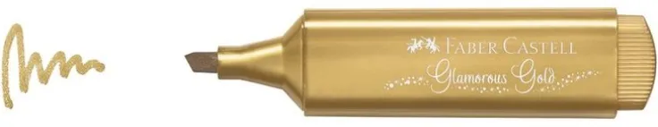 Överstrykningspenna Textliner Metallic för markering och färgläggning med glittrande metallic effekt, ej täckande, ej fluoricerande, skuren spets med tre linjebredder 1, 2 och 5 mm, pennan bör förvaras horisontellt. Pennkropp i recycled PP.