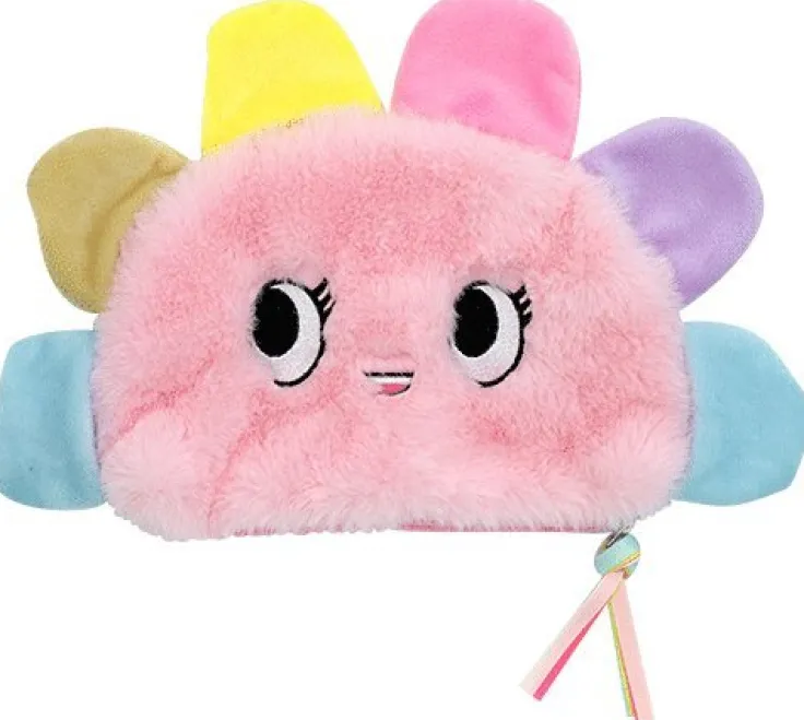 Fluffigt rosa pennfodral formad som en sol
