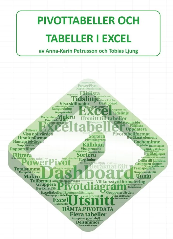 Pivottabeller och tabeller i Excel är boken för dig som snabbare vill summera och sammanställa dina data i Excel oavsett kunskapsnivå. Lär dig skapa proffsiga rapporter och effektiva analyser med tabeller, diagram och utsnitt. Boken passar både för självstudier och som kurslitteratur för Excelkurser. Boken innehåller 250 sidor i fyrfärgstryck och A4-format. Den är skriven på svenska, men även om du har en engelsk version är boken fylld med översättningar för funktioner och knappbeskrivningar. Boken kan med fördel användas som läromedel. Boken innehåller många övningsuppgifter och till boken följer övningsfiler med facit.