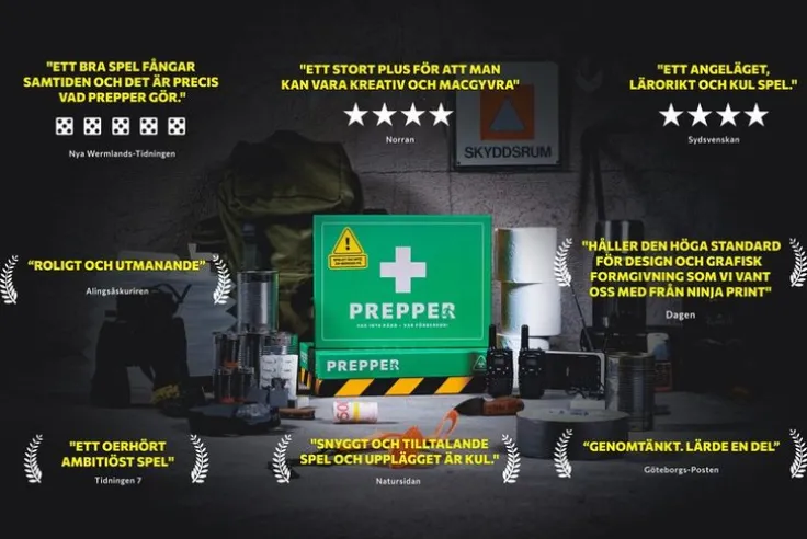Var inte rädd – var förberedd! Har du vad som krävs för att överleva när kranarna är torra, strömmen har gått och konserverna sinar? Och vem lyckas MacGyvra sig ur den knivigaste av situationer?MSB, Myndigheten för samhällsskydd och beredskap, säger att varje hem ska ha en krislåda. Att det är ditt ansvar att vara förberedd på att klara dig i minst 72 timmar utan vatten, värme eller Wi-Fi. Är dunkarna fyllda och du redo? Trodde inte det va. Med det här spelet lyfter du din krisberedskap till nya höjder – med glimten i ögat och en vevradio i din Bug Out Bag!Prepper är brädspelet där du får kombinera sunt förnuft och strategisk skärpa med din förmåga att tänka kreativt på stående fot. I spelets första del sätter vi din överlevnadskunskap på prov med en rad trixiga frågor, medan du fyller ditt preppingförråd med smart utrustning. Allt du vet är att du behöver vara beredd, vad som än händer.Prepper pendlar mellan helylle och totalt vanvett – men hur du än tar dig igenom spelet (och kriserna!), kommer du ut på andra sidan garanterat mer förberedd. Och bästa preppare, kom ihåg: hoppet hägrar vid horisonten, men det är alltid mörkast före gryningen. Om inte du har skaffat en riktig krislåda där hemma, låt detta bli din första. Krishantering har sällan varit roligare.
