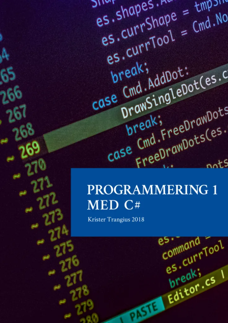 Denna bok är skriven för och täcker innehållet i gymnasiekursen Programmering 1. Den fungerar lika utmärkt i klassrummet som för dig som läser på distans. Men också för dig som vill lära dig programmera på egen hand. Läroboken är upplagd så att den går att läsa från början till slut och att du på så vis lär dig grunderna i C# steg för steg. Språket är enkelt och syftet är att göra det svåra så enkelt som möjligt. Boken innehåller instruktioner för hur du ska koda men behandlar också hur du kan arbeta med problemlösning, felhantering och dokumentation. I linje med kursens utformning behandlar boken också programmeringens koppling till samhället i stort. Läroboken är på 200 sidor, spiralbunden, tryckt i färg och har vårt smidiga format 16×22,5 cm.