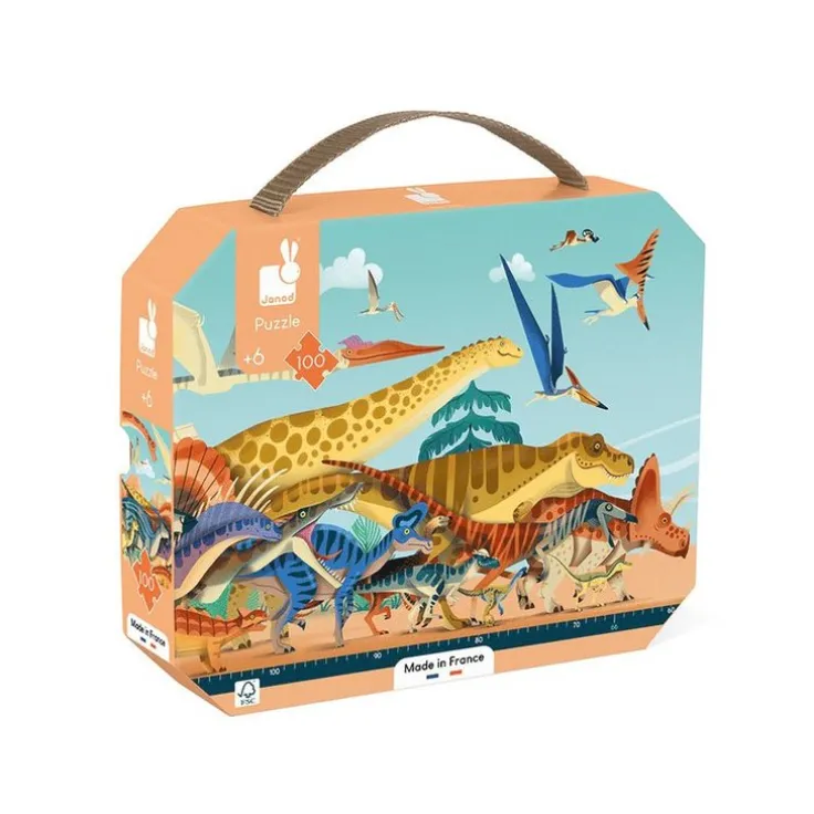 Följ med på en resa genom dinosauriernas tid med detta panorama pussel!Detta 100-bitars pussel i kartong är en illustrerad tidslinje över dinosauriernas era, full av intressanta detaljer att upptäcka. De tjocka bitarna passar perfekt i små händer och är lätta att greppa. Praktiskt! Alla pusselbitar kan förvaras i den medföljande förvaringsboxen med handtag. Pusslet är tillverkat av FSC®-mixad kartong och tryckt med vegetabiliskt bläck. En affisch medföljer.