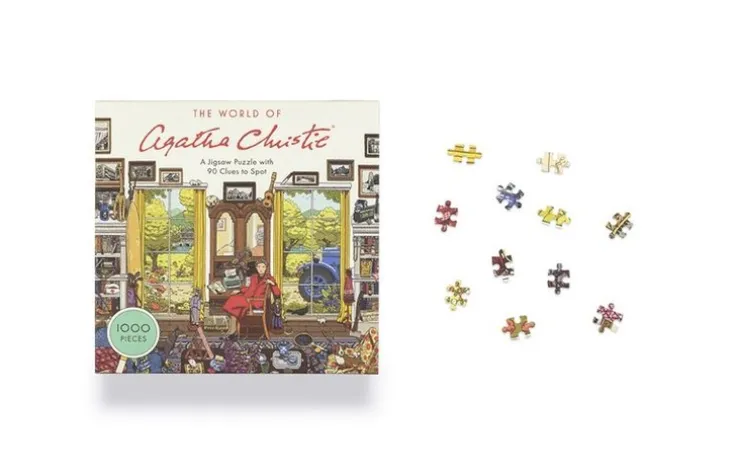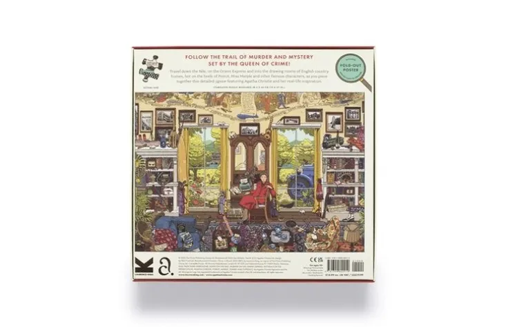 Pussel med 1000 bitar i stadig kvadratisk ask. Innehåller en utvikbar affisch med pusslets bild på ena sidan och på den andra sidan 60 briljanta karaktärer och ledtrådar som tillsammans utgör Agatha Christies värld.Sätt ihop världen av Agatha Christie och upptäck hennes mest kända karaktärer när du lägger detta mysteriefyllda pussel. Följ spåren av mord och mysterier som den kriminella drottningen satt! Res längs Nilen, på Orientexpressen och in i salongerna i engelska landsbygdshus, tätt i hälarna på Poirot, Miss Marple och andra kända karaktärer medan du pusslar ihop detta detaljerade pussel som skildrar Agatha Christie och hennes verkliga inspiration. Pusslet innehåller över 60 ledtrådar att upptäcka från Agatha Christies liv och verk!Pusslet är 48,5 x 68 cm när det är klart.