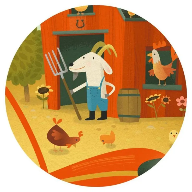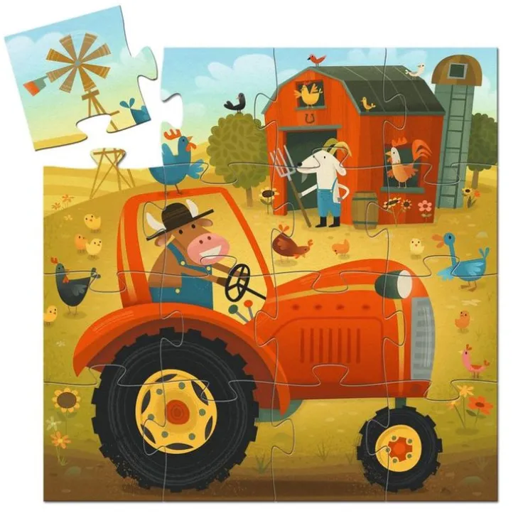 Ett färgglatt och charmigt 16-bitars pussel där motivet föreställer en glad ko som kör sin sin traktor tillbaka till bondgården. . Pusslet kommer i en dekorativ låda formad som en traktor, med fina detaljer och lekvänlig design – lika fin som leksak som inredningsdetlaj i barnrummet. De stora bitarna är enkla att greppa för små händer och passar därför utmärkt för yngre barn. Det färdiga pusslet mäter 25 x 25 cm.