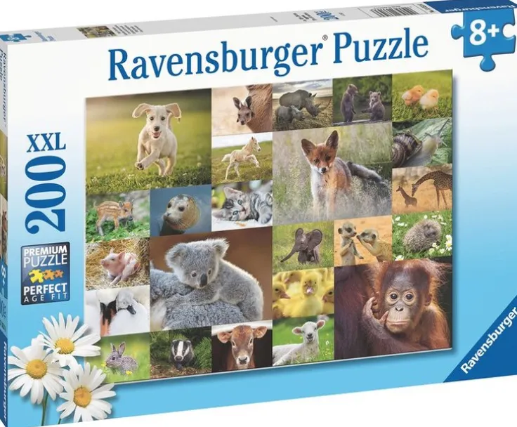Barnpussel från Ravensburger, Animal Babies 200-bitar. Upptäck den perfekta passformen! Ravensburgerurger har ett perfekt pussel för varje barn. Med intressanta motiv och strategiska storlekar på bitarna samt en mängd olika format garanteras framgång för alla åldersgrupper och svårighetsgrader! Ravensburgerurger barnpussel är ett roligt sätt att träna igenkänning, logiskt tänkande, tålamod och öga/handkoordination. När du väljer rätt pusselsvårighet stärks ditt barns självförtroende och närminne samtidigt som han eller hon har roligt! Sedan 1891 har vi tillverkat världens finaste pussel i Ravensburgerurg i Tyskland. Vår fokus på detaljer har gjort Ravensburgerurger till världens största pusselmärke! Vi använder specialutvecklad extra tjock kartong i kombination med fint linnestrukturpapper för att skapa en bländfri pusselbild för kvalitet som du både ser och känner. Våra skärverktyg av stål är designade och tillverkade för hand. Detta garanterar att inga två bitar är likadana och garanterar perfekt passning när bitarna sätts ihop. Njut av Ravensburgerurger-kvalitet med denna familjevänliga aktivitet!Kontakt:Ravensburger Verlag GmbHP.O. Box 2460, 88194 Ravensburghttps://www.ravensburger.com