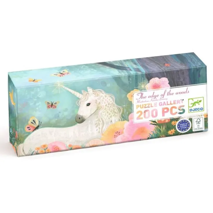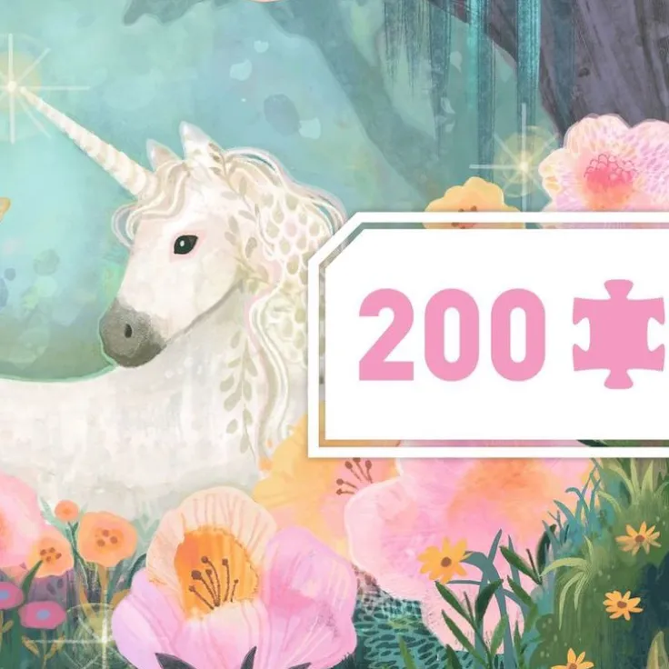 Ett vackert och fantasifullt 200-bitars pussel med ett ovanligt långsmalt format (ca 33 x 97 cm) som gör det både överskådligt och roligt att lägga. Motivet visar en magisk skogsglänta där en enhörning vilar bland blommor och charmiga djurvänner – fullt av små, spännande detaljer att upptäcka. Ett inspirerande sätt för barn och vuxna att utforska illustration och form, samtidigt som de tränar koncentration och tålamod. Levereras i dekorativ ask med affisch i naturlig storlek vilken kan användas som en referens när man lägger pusslet. Tillverkat i Europa.