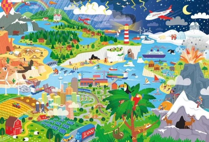 Boken är fylld med fina illustrationer och spännande fakta om olika miljöer på jorden, från berg till öknar. Boken går även igenom viktiga ämnen som klimatförändringar. En rolig och lärorik upplevelse för unga äventyrare!