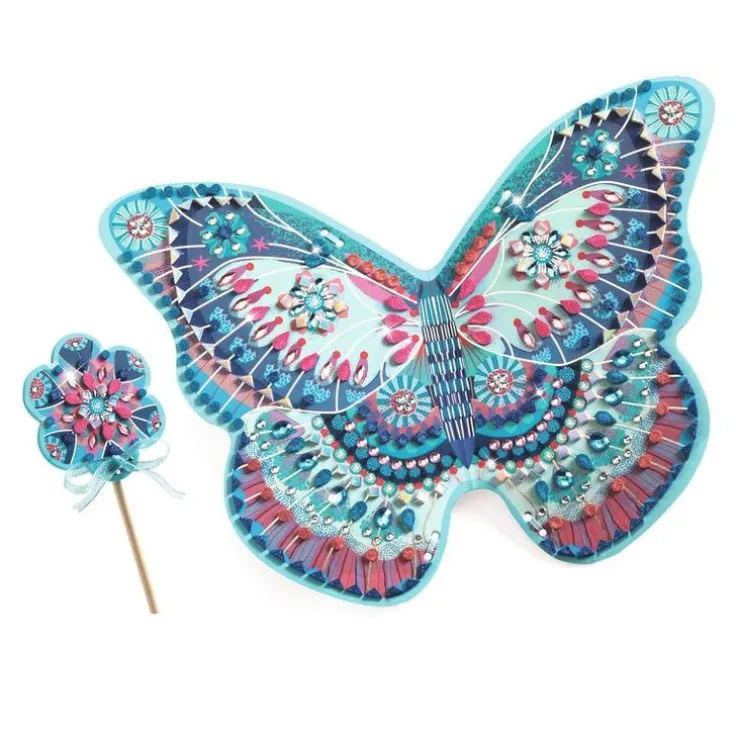 Detta kreativa DIY pysselkit från Djeco låter barn dekorera en sagolik trollstav och ett par vackra vingar med glittrande mosaikstickers och gnistrande ädelstensklistermärken. Genom att matcha siffror och fästa de självhäftande bitarna på rätt plats får barnet en rolig och pedagogisk pysselstund – fylld av färg, form och fantasi. När vingarna och trollstaven är färdigdekorerade, monteras de enkelt ihop med elastiska band och förvandlas till magiska tillbehör redo för lek och äventyr. En perfekt aktivitet eller present för alla barn som älskar att skapa och drömma! Kittet innehåller: 1 par illustrerade vingar i tålig kartong, 2 elastiska band, 1 trollstav, 5 ark glittrande mosaikstickers, 3 ark ”ädelstens”-stickers, 1 instruktionsbok.