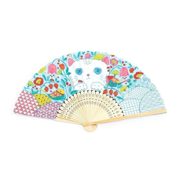 Färglägg din egen solfjäder. Förpackningen innehåller en bra solfjäder med tunna dekorerade träpinnar som grund och en steg-för-steg instruktion för den som önskar hjälp. Den fina solfjärdern kommer i en ask som också kan färgläggas (färger ingår dock inte i detta set). Storlek på den utfällda solfjädern: ca 37 x 21 cm