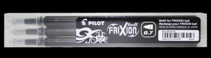 Refill i 3-pack till Frixion Ball, den raderbara pennan med det värmekänsliga patenterade bläcket . Du kan enkelt sudda det du skrivit med pennans radertopp.