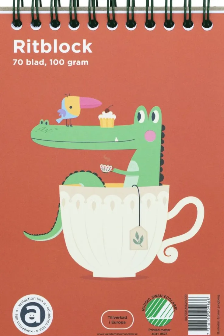 Svanenmärkt.Tillverkad i Europa.70 blad.Unikt illustrerad av Emma Ljungberg för Akademibokhandeln. Ritblocket ingår i Akademibokhandelns egen kollektion – Kollektion lilla a.