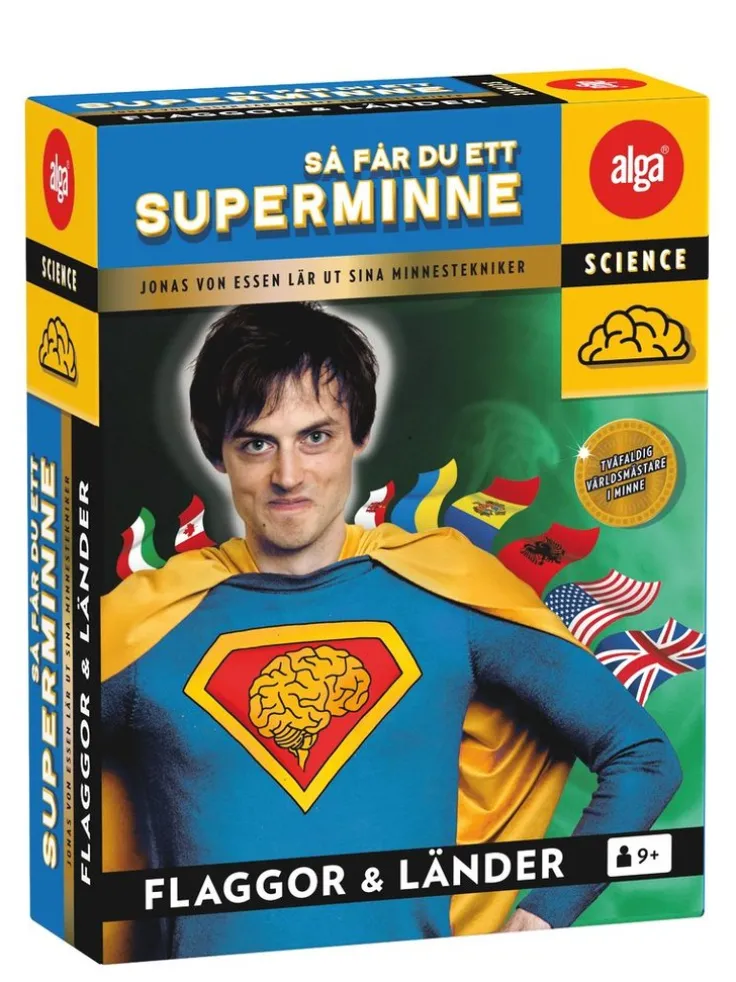 Bli ett minnesgeni! Lär dig grunderna till ett fenomenalt minne och bli Supersmart på köpet! Är det svårt med läxorna – lär dig dem snabbt med Jonas teknik. I denna låda lär du dig geografi, länder, huvudstäder och flaggor med kopplingsmetoden. Jonas von Essen är flerfaldig världsmästare i minne och håller kurser i minnestekniker. Nu lär han ut sina kunskaper till skolbarn och familjer.