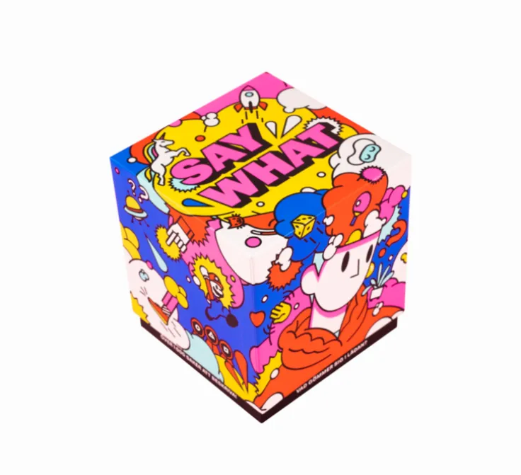 Festspelet med över 1000 saker i lådan att beskriva! Kan du din populärkultur? Och hur bra är du på att förklara saker? Här har du 1 200 tillfällen att visa vad du går för i en enda liten låda! Say What är ett charadigt festspel där ni under tre fartfyllda ronder beskriver och gissar påverkliga och påhittade personer, kända verk eller namn på ting. Kungen, Totoro, Sex and the City eller stekspade? Du vet aldrig var du hamnar i Say What!Say What är lika lätt att lära sig som det är att spela, och så omväxlande att du kommer att vilja spela det igen och igen.