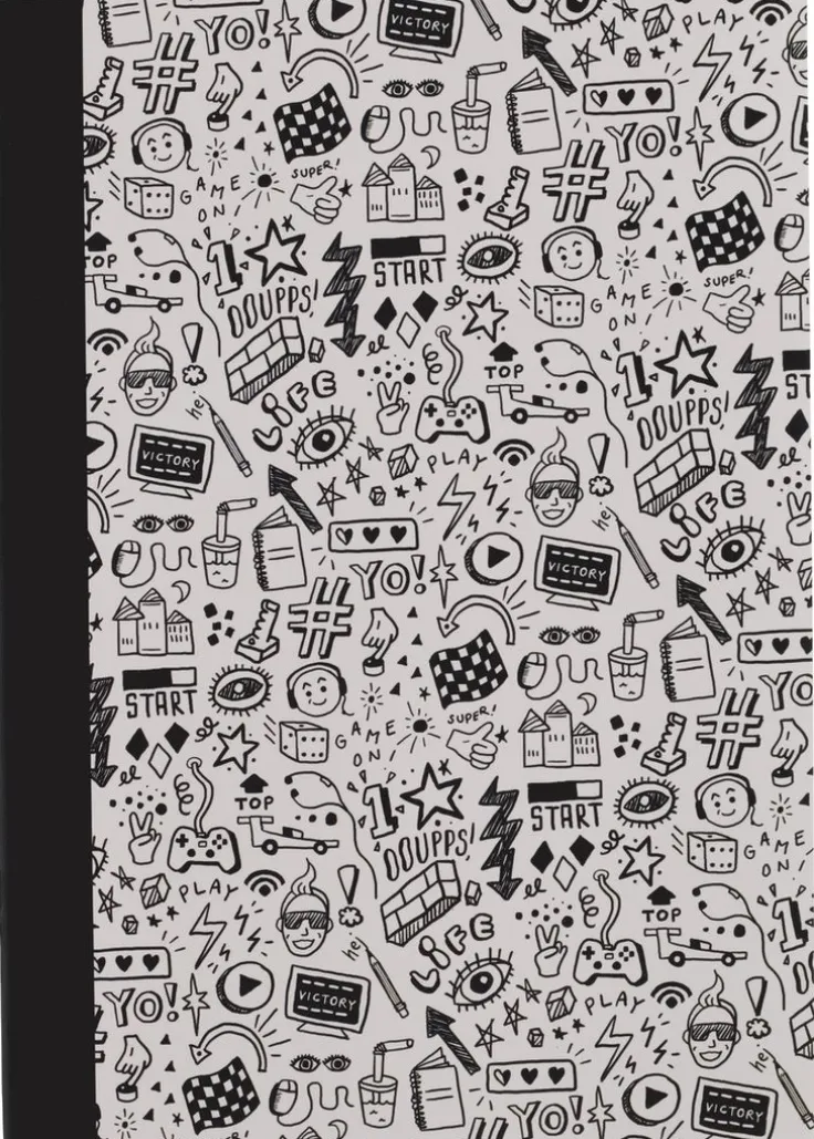 Rymligt skrivhäfte i A4-format med en livlig mönsterbild mot vit bakgrund som för tankarna till spel och sociala medier. Fyll bokens linjerade sidor med allt mellan himmel och jord! De mjuka pärmarna gör skrivhäftet flexibelt och lätt att ta med överallt.80 linjerade sidorA4-formatTillverkad av FSC-märkt papper, ett bättre val för dig och vår världEtt lekfullt skrivhäfte att fylla med tankar, texter och kludd. Ingår i Akademibokhandelns egen kollektion – Kollektion Stora A.
