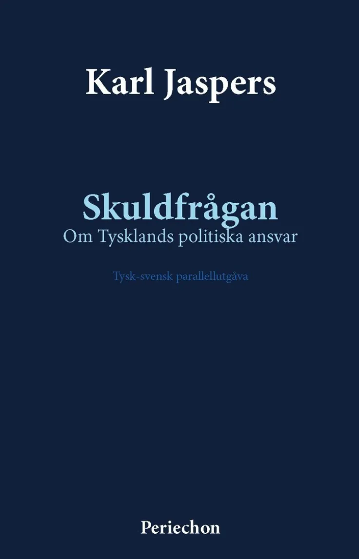 I Skuldfrågan erbjuder Jaspers oss ett utdrag ur en serie föreläsningar som han höll i Heidelberg vintern 1945-1946. Det nationalsocialistiska Tysklands brott hade då för första gången blivit uppenbara för hela folket. Jaspers försökte tänka – obevekligt och utan självgodhet – när skräck och skam förvandlades till förvirring, tystnad, dold ilska. Detta ställningstagande av Karl Jaspers var ett första svar på segermakternas tes om tysk kollektiv skuld.