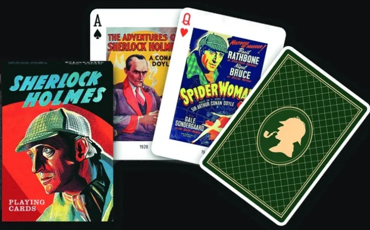 Högkvalitativa spelkort/samlarkort. Fira den fiktiva privatdetektiven skapad av den brittiske författaren Sir Arthur Conan Doyle. Inuti detta paket finns 52 (+Jokrar) unikt designade spelkort med kända konstverk och karaktärer från Sherlock Holmes-historierna.