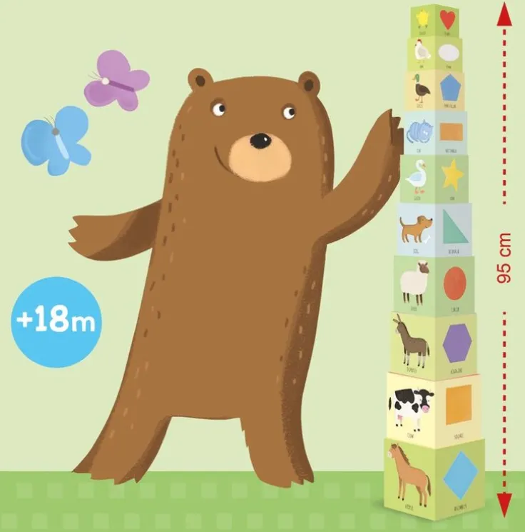 De lätta klossarna är enkla att stapla och riskfria för tårna när tornet rasar! Att bygga och rasa om och om igen är förstås roligt, och med klossarnas hjälp utvecklar barnet motoriken på ett lustfyllt sätt!