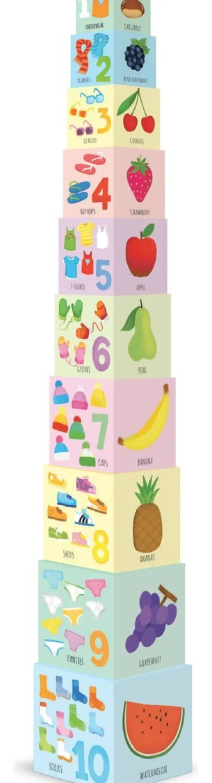10 klossar (med öppen botten) att stapla och räkna.