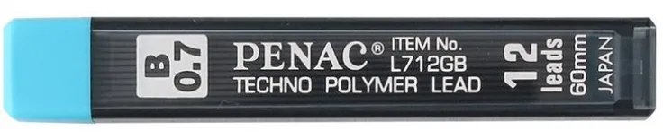 Blyertsstift till stiftpennor. 12 st per tub från Japanska tillverkaren Penac. Bra mix av svärta, brytsäkerhet och flexibilitet tack vare samansättningen av grafit och polymer. Stiften finns i olika hårdheter som befinner sig på en skala med siffror i kombination med H eller B. H betyder ”hard” och B betyder ”black” – en bra minnesregel när det gäller att komma ihåg vad som egentligen är vad. Ju högre siffra i kombination med H betyder ett hårdare stift, som inte heller blir lika mörkt på pappret. Ju högre siffra i kombination med B betyder motsatsen, ett mjukare stift som blir desto mörkare i färgen och dessutom passar ypperligt att skugga med. Vad man tycker är skönast att skriva med är dock högst individuellt, men den hårdhet de flesta använder vid vanligt skrivande är HB. Kanske just för att den är alldeles lagom för de flesta då den befinner sig mitt på skalan.
