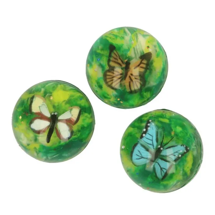 Snygg och häftig studsboll med varsin vacker fjäril inuti. Kommer i flera olika varianter som är roliga att samla på.