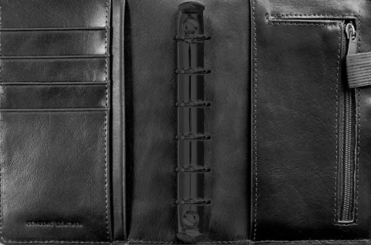 Systemkalender med grundsats. Grundsatsen innehåller hålad kalenderdel (4201) och blankettdel. Pärmen har ringmekanism (Ø 20 mm), fyra kreditkortsfickor, sedelfack, myntficka, fack för kvitton o dyl och pennhållare. Format pärm: 110×150 mm.Kalender 2026 från Burde. Format: 79×127 mm. Layout: Liggande. Vecka/uppslag. Kalendarium: 2025-11-10 – 2027-01-24. Omslag: Skinn. Detaljer: Flyttbar plastlinjal. Innehåll: Kyrkliga helgdagar, flaggdagar, helgdagar/aftnar, månfaser, namnsdagar, internationella helgdagar översikt, temadagar/händelser, årsöversikt/årsöversikter, årsplan/årsplaner, budget, kassabok, körjournal, flyttbar markör/linjal, anteckningssidor, projektarbete, register a-ö, flikregister, telefonregister, to-do. Antal sidor: 192. Miljöinformation: FSC® papper.