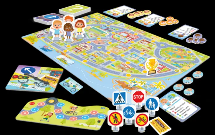 Loppet är igång för att nå färdmålen! Rör dig säkert genom trafiken. Vem vinner den eftertraktade pokalen som den skickligaste trafikanten får? Ett gäng kompisar är på väg hem från skolan. De tävlar om vem som kan göra sina uppgifter snabbast och därmed komma hem först. Använd dina steg på ett klokt sätt och svara på trafikrelaterade frågor korrekt. Du kan fritt flytta vägmärken vilket gör varje spelomgång ny och utmanande. Pokalen till den skickligaste trafikanten hägrar så försök komma först till mål!