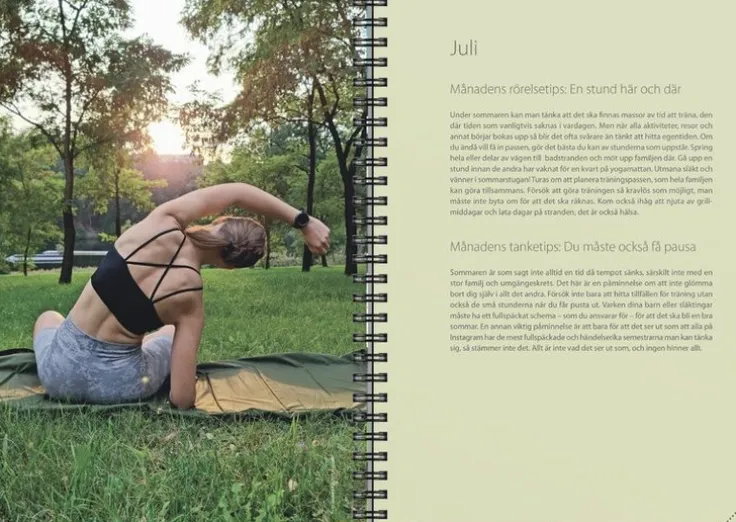 Att börja med nya, sunda vanor är enkelt, det svåra är att behålla dem. Med en smart planering ökar dina chanser att lyckas. I denna träningskalender hittar du ett program för dig som vill ha en allsidigt tränad kropp med en kombination av löpning och styrketräning och ett program för dig som vill komma igång med meditation och andningsträning så att den mentala träningen blir en naturlig del av din vardagsrutin. Båda programmen är signerade löpcoachen och PT:n Jenny Sunding. Hon ger också hälsosamma tips som håller inspirationen vid liv hela året. Det finns självklart också plats för veckoplanering, på varje uppslag finns dels en kalendersida, dels en aktivitetssida. Gör medvetna val för din hälsa och upptäck hur energin och orken i din vardag ökar!Kalender 2025 från Burde. Format: A5. Layout: Liggande. Vecka/uppslag. Kalendarium: 2024-12-23 – 2026-01-04. Omslag: Kartong med sammetslen yta. Spiralbunden. Detaljer: Gummiband. Pappersficka. Innehåll: Årsplaner. Antal sidor: 160. Miljöinformation: FSC®.