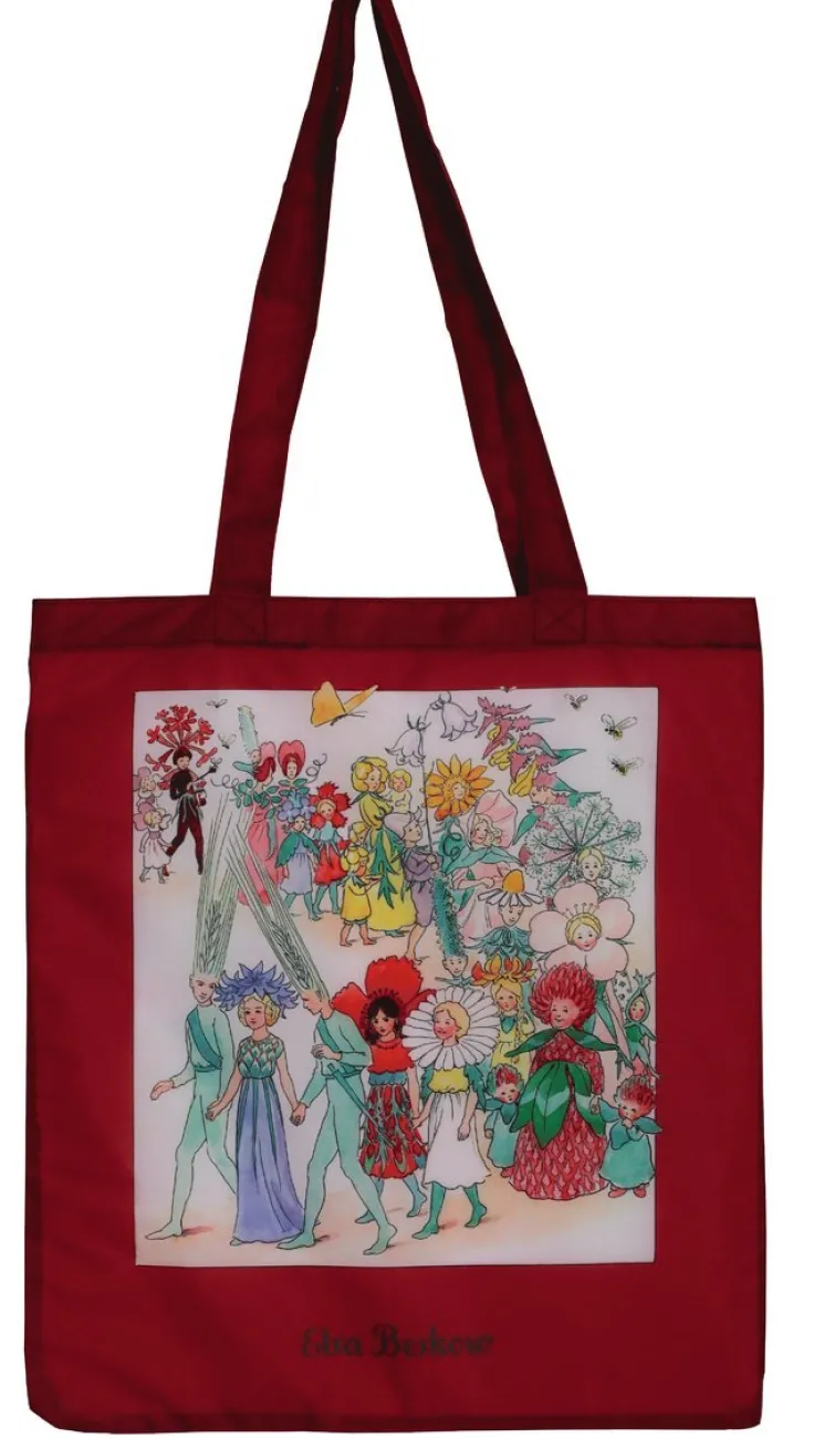 Härlig vinröd tygkasse som passar perfekt att förvara dina saker i när du är på språng. Kassen har en praktisk innerficka som den kan vikas ihop i för enkel och smidig förvaring. Motivet är hämtat ur Elsa Beskows bilderbok Blomsterfesten i täppan från 1914. En saga där trädgårdens alla blommor och växter anländer i en färgsprakande parad för att fira midsommar.Mått: 36×40 cmMått hopvikt: 10×13 cmElsa Beskow är en av Sveriges mest älskade barnboksförfattare genom tiderna. Kassen har en praktisk innerficka som den kan vikas ihop i för enkel och smidig förvaring. Hon var en skicklig skribent och konstnär som väckte sina böcker till liv med vackra illustrationer. Elsas fantasifulla bildvärld består av detaljrika akvareller, svartvita teckningar och eleganta silhuetter där naturen är ständigt närvarande. Hennes magiska kulturskatt inspirerar än idag läsare och bilderbokskonstnärer världen över. Nu i ett unikt samarbete med Akademibokhandeln för vår egen kollektion – Kollektion Stora A.