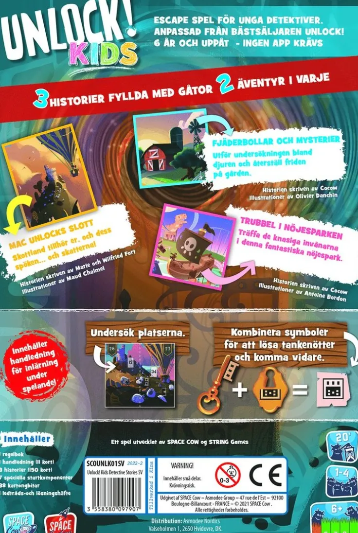 Bästsäljande Unlock! har äntligen kommit i en ny utgåva designad för de yngre (6 år och uppåt). Tre historier med två äventyr var fyllda med mysterier. Skillnad från de övriga Unlock spelen så innehåller denna ingen text, matte eller app-support, endast mer skoj! Ingen regel läsning behövs, innehåller ett introduktions scenario som förklarar de olika symboler och kort! Leta igenom platser, hitta verktygen och kombinera dem i ett smart symbol system för att lösa pusslen och mini utmaningarna. Behöver ingen app för att spelas.