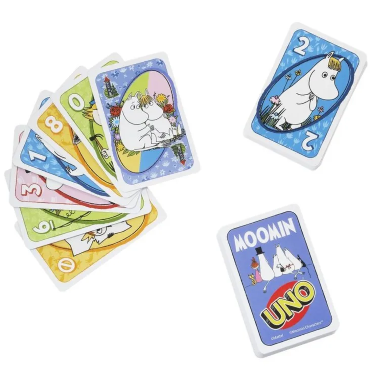 Mumin-fans kommer att älska att spela det här UNO-kortspelet. Spelare försöker att matcha färger och siffror med en kortlek försedd med bilder inspirerade av favoritkaraktärer och scener det finns till och med en särskild Sagor från Mumindalen-regel som gör att spelarna måste kasta ett kort var! Och glöm inte att ropa ”UNO” när du bara har ett kort kvar. En perfekt present till alla från 7 år som älskar Mumin och kortspel. Färger och dekorationer kan variera. Från 7 år.