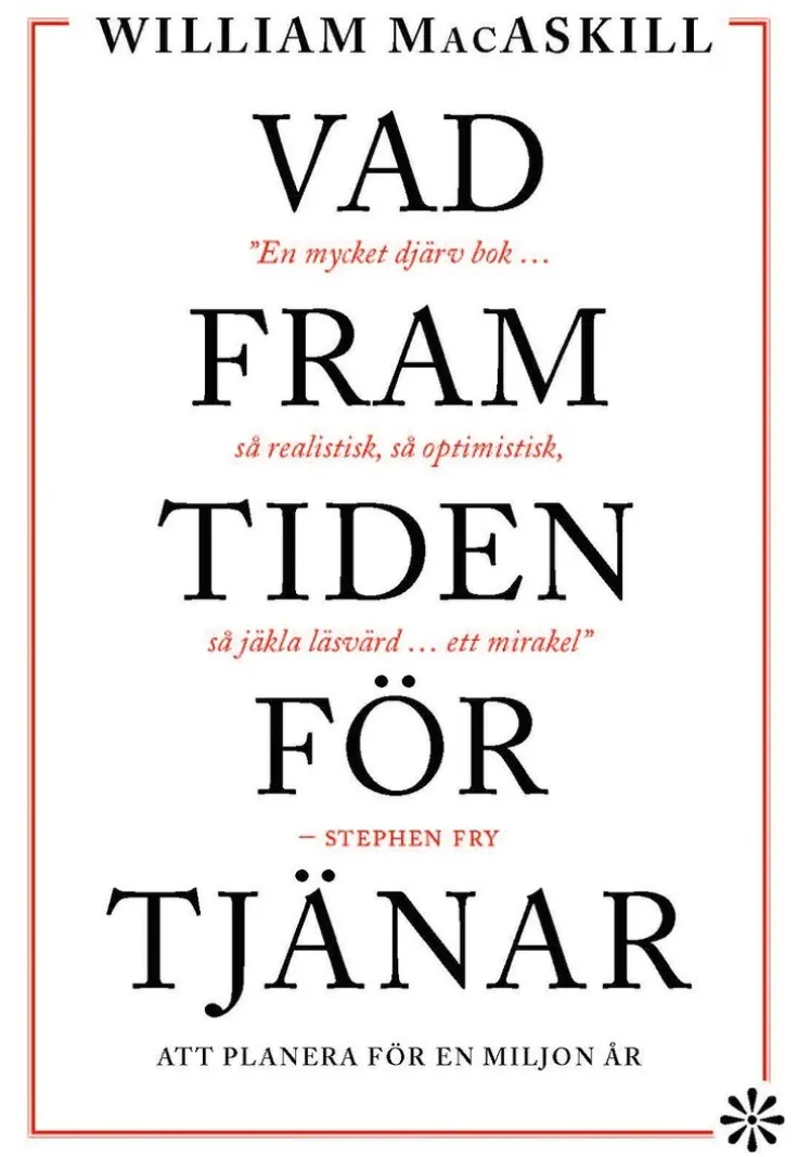 I Vad framtiden förtjänar argumenterar den skotske stjärnfilosofen William MacAskill för longtermism insikten om hur kolossalt lång framtiden kan bli och hur höga insatserna därför är när vi formar den. Vi lever i historiens början, i det mest avlägsna förflutna.