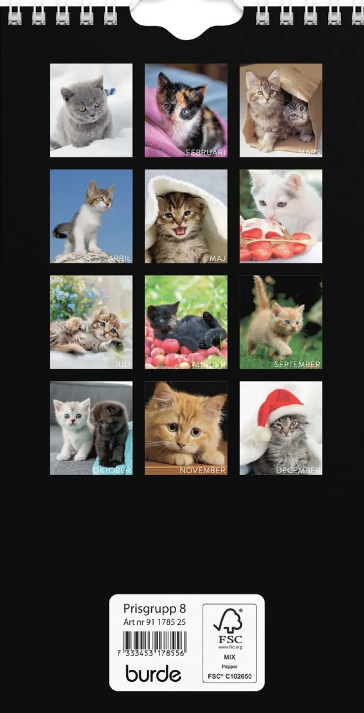 Väggkalender 2025 från Burde. Format: 120×230 mm. Layout: Månad/blad. Kalendarium: 2025-01-01 – 2025-12-31. Spiralbunden. Antal sidor: 12. Miljöinformation: FSC®.