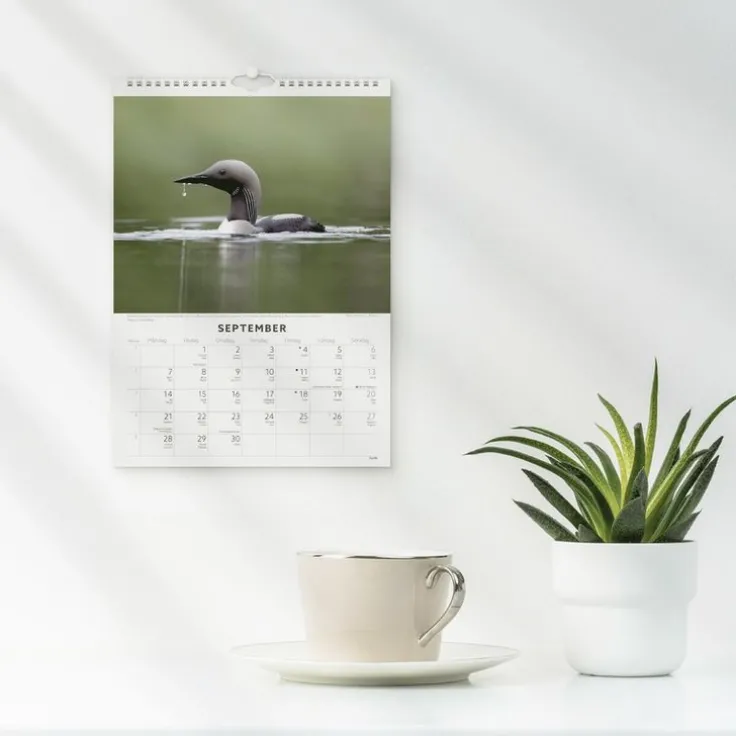 Väggkalendern har bilder på nordiska fåglar. Man kan läsa lite fakta om varje fågelart och det finns plats för anteckningar i månadskalendariumet.>Väggkalender 2026 från Burde. Format: A4. Layout: Månad/blad. Kalendarium: 2026-01-01 – 2026-12-31. Spiralbunden. Innehåll: Flaggdagar, helgdagar/aftnar, månfaser, namnsdagar, temadagar/händelser,. Antal sidor: 12. Miljöinformation: FSC®.