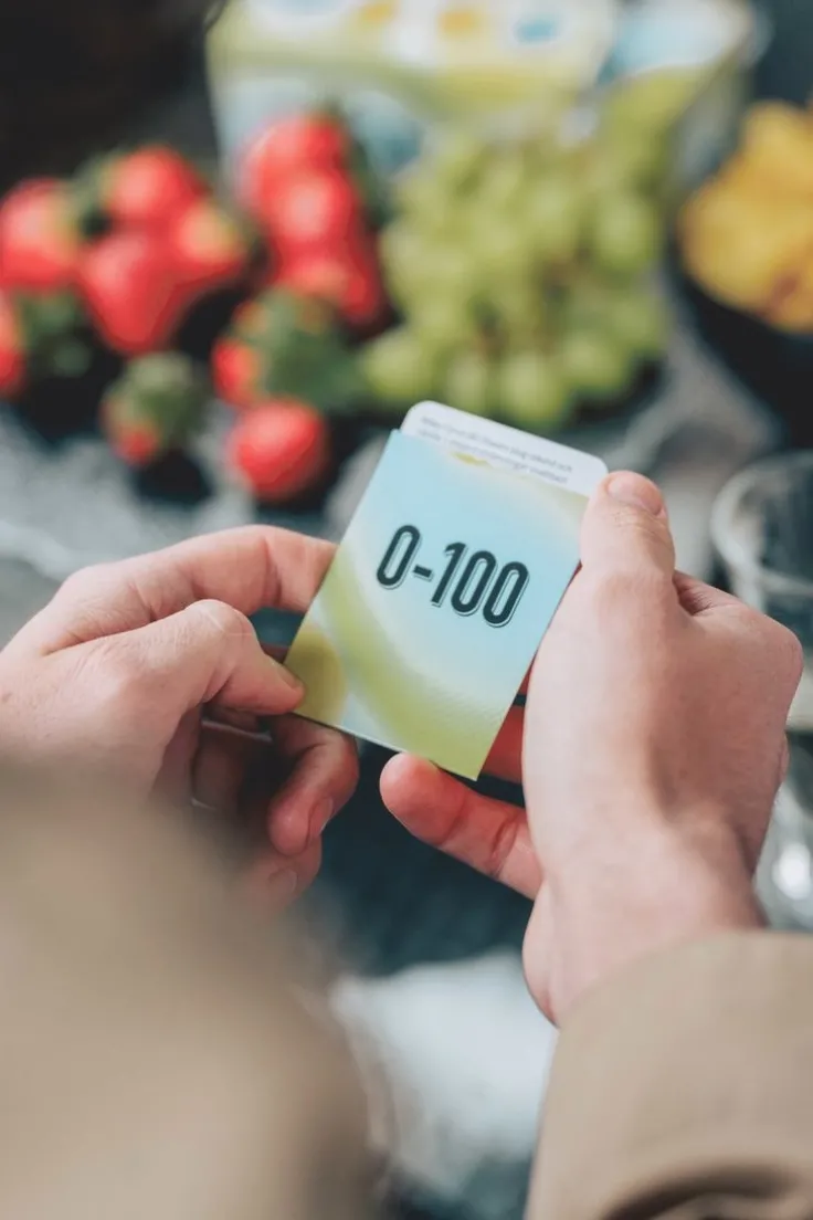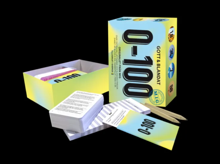 0-100 Gott & Blandat hade premiär hösten 2023 och spelet är fyllt med en skön blandning av roliga, lättsamma och klassiska 0-100-frågor. Spelet innehåller över 700 frågor där alla svar är ett tal mellan 0-100. Kan du inte svaret är det bara att chansa, närmast vinner. Ofta kan man inte det exakta svaret, då gäller det att komma så nära som möjligt. Den som har minst differens när en spelomgång är slut vinner. Ett snabbspelat och underhållande frågespel utan krångliga regler, som passar alla. Tillverkad i Sverige av Playmig. Innehåll: Över 700 frågor, poängblock, korthållare, pennor. 2 eller fler spelare. Roligt att spela i lag. Speltid från 15 min