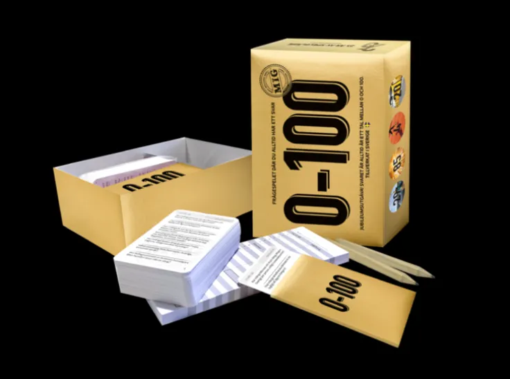 Vårt mest populära frågespel i jubileums-upplaga. 0–100 Guld innehåller över 700 underhållande och aktuella frågor som räcker länge för alla speltillfällen. Spela det nya spelsättet där du och dina medspelare samarbetar. Tillsammans ska ni prestera så bra som möjligt. Är ni 0-100 proffs eller kan ni till och med slå världseliten? Svaret är alltid är ett tal mellan 0 och 100. Kan du inte svaret är det bara att chansa – närmast vinner. Spelet är lätt att ta med. Tillverkad i Sverige av Playmig. Innehåll: 707 frågor, kortficka, block och pennor. Speltid: Från 15 minuter. Antal spelare: 2-6, eller fler. Spela gärna i lag.