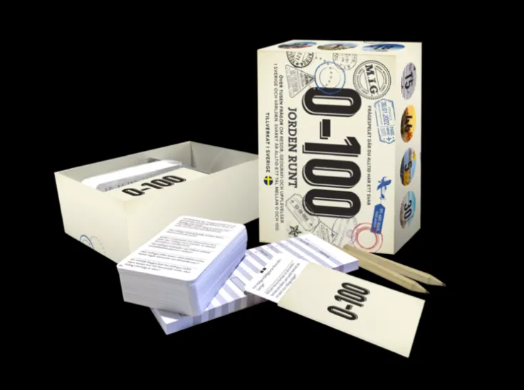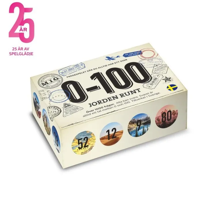 0-100 Jorden Runt innehåller över 1000 frågor om resor, geografi, mat, nöje, händelser i Sverige och världen över. 0-100 är ett roligt sätt att få kunskap genom att fundera, göra rimlighetsantagande och gissningar tillsammans med andra. Svaren är alltid ett tal mellan 0-100. Ta med på resan eller spela hemma med nära och kära. Tillverkad i Sverige av Playmig. Innehåll: 1064 frågor, spelblock. 2 eller fler spelare. Eller spela i lag. Speltid från 15 min