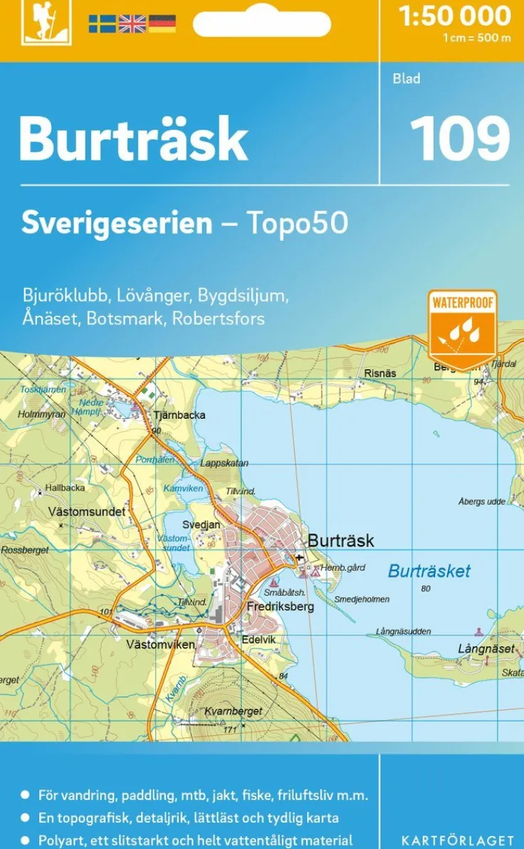 Sverigeserien är en kvalitetskarta som är gjord för att användas! Aktuellt kartdata är hämtat från Lantmäteriet och den är tryckt på Polyart som är helt vattentåligt och slitstarkt. Det mjuka materialet tål att vikas om och om igen. Den klarar både vinterns och sommarens ibland utmanande väder i Sverige. Kartorna har en utförlig teckenförklaring på svenska, engelska och tyska.