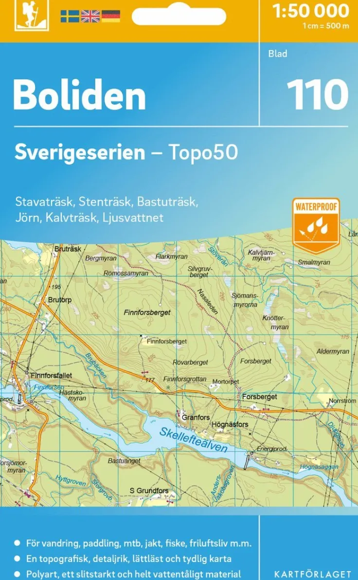 Sverigeserien är en kvalitetskarta som är gjord för att användas! Aktuellt kartdata är hämtat från Lantmäteriet och den är tryckt på Polyart som är helt vattentåligt och slitstarkt. Det mjuka materialet tål att vikas om och om igen. Den klarar både vinterns och sommarens ibland utmanande väder i Sverige. Kartorna har en utförlig teckenförklaring på svenska, engelska och tyska.