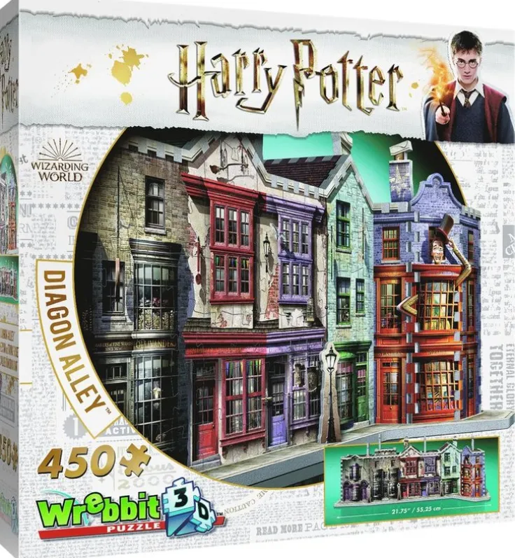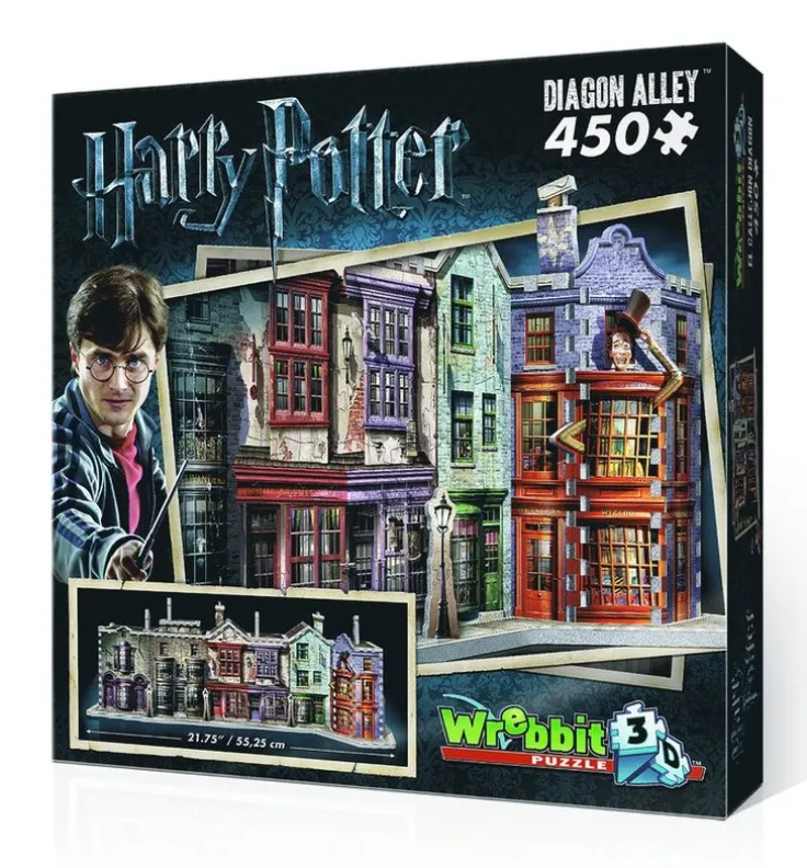 Ett Harry Potter 3D-pussel med 450 bitar, som blir Diagongränden. Bitarna är tillverkade av tunn kartong med baksida av skumplast och de är 6 mm tjocka. Det uppbyggda pusslets storlek är 55,25 x 19,5 x 21,5 cm. 14+Se beskrivning hur du bygger 3D-pusslet här.