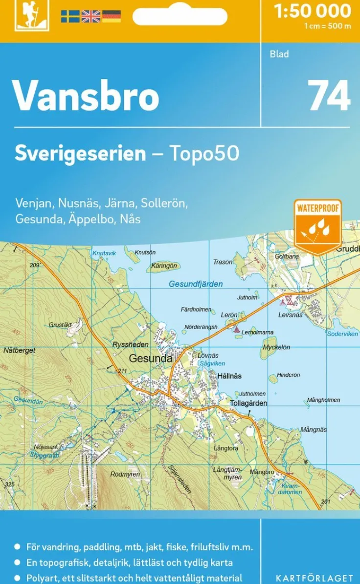 Sverigeserien är en kvalitetskarta som är gjord för att användas! Aktuellt kartdata är hämtat från Lantmäteriet och den är tryckt på Polyart som är helt vattentåligt och slitstarkt. Det mjuka materialet tål att vikas om och om igen. Den klarar både vinterns och sommarens ibland utmanande väder i Sverige. Kartorna har en utförlig teckenförklaring på svenska, engelska och tyska.