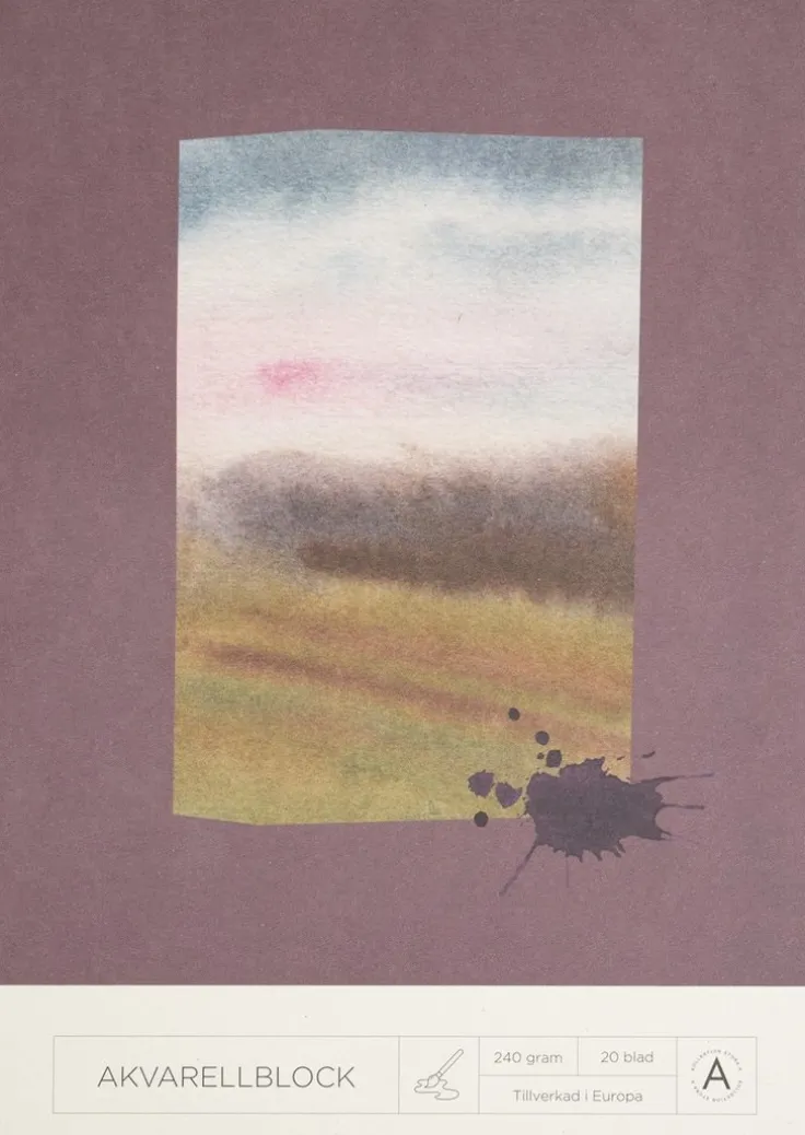 Akvarellblock i A4 format med 20 blanka blad av god kvalitet och med perfekt gräng (ytstruktur) för akvarellmålningar. Bladen är limmade och enkla att riva av vid behov. Blocket har en vacker framsida föreställande ett abstrakt landskap målat i akvarell. Blocket är FSC-märkt och tillverkad i Europa.FSC-märkt20 blad240 g papperSläpp loss din kreativitet i detta akvarellblock som passar för såväl erfarna som nyblivna konstnärer. Akvarellblocket ingår i Akademibokhandelns egen kollektion – Kollektion Stora A.