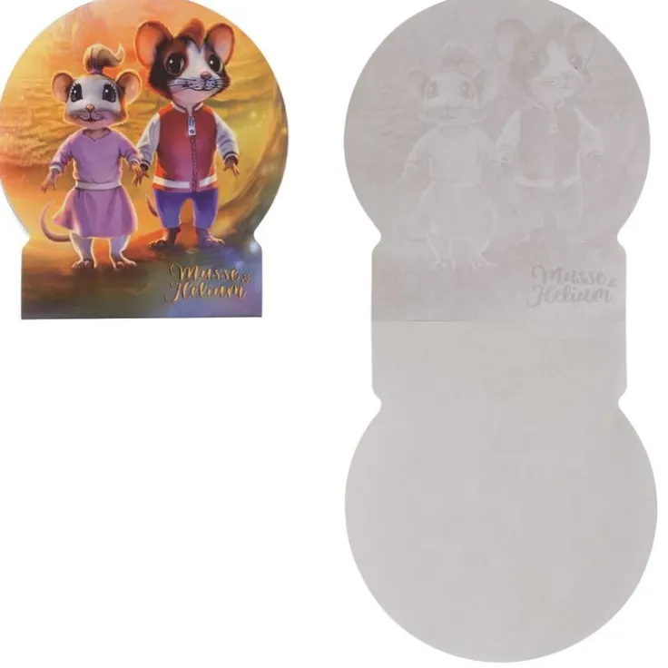 Skrivblock med bokfavoriterna Musse & Helium. Färgglad framsida och 60 formade blad med tryck på varje blad.