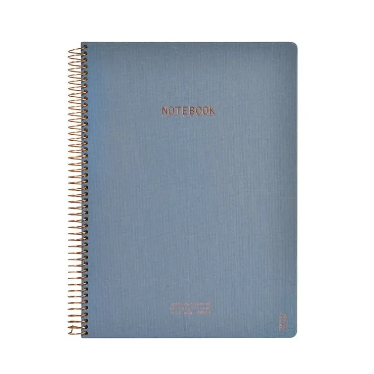 KOZO Premium anteckningsbok är definitivt en av de snyggaste anteckningsböckerna på marknaden. Det kraftiga canvasomslaget med vackra detaljer i brons och den kaxigt stora spiralen, även den i brons, gör den perfekt att skriva och ta anteckningar i, både när du har den liggandes i knät eller till och med stående utan stöd. Och givetvis en vacker inredningsdetalj till ditt skrivbord. Att skriva på det cremefärgade 100 g pappret ger en lyxig känsla. Alla 160 sidor i anteckningsboken har en datumrad uppe till höger, enkelt och praktiskt. Matchar alla andra KOZO skrivbordsartiklar i samma färgnyanser.