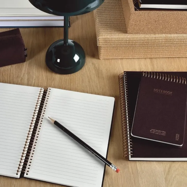 KOZO Premium anteckningsbok är definitivt en av de snyggaste anteckningsböckerna på marknaden. Det kraftiga canvasomslaget med vackra detaljer i brons och den kaxigt stora spiralen, även den i brons, gör den perfekt att skriva och ta anteckningar i, både när du har den liggandes i knät eller till och med stående utan stöd. Och givetvis en vacker inredningsdetalj till ditt skrivbord. Att skriva på det cremefärgade 100 g pappret ger en lyxig känsla. Alla 80 sidor i anteckningsboken har en datumrad uppe till höger, enkelt och praktiskt. Matchar alla andra KOZO skrivbordsartiklar i samma färgnyanser.