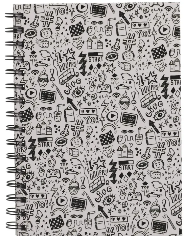 Anteckningsbok i A5-format med en livlig mönsterbild mot vit bakgrund som för tankarna till spel och sociala medier. Det nätta A5-formatet gör det smidigt att ta med boken överallt och du river enkelt ut sidor tack vare dess smidiga spiralrygg.A5-format180 linjerade sidor Tillverkad av FSC-märkt papper, ett bättre val för dig och vår världEn härlig anteckningsbok att fylla med allt mellan himmel och jord. Anteckningsboken ingår i Akademibokhandelns egen kollektion – Kollektion Stora A.